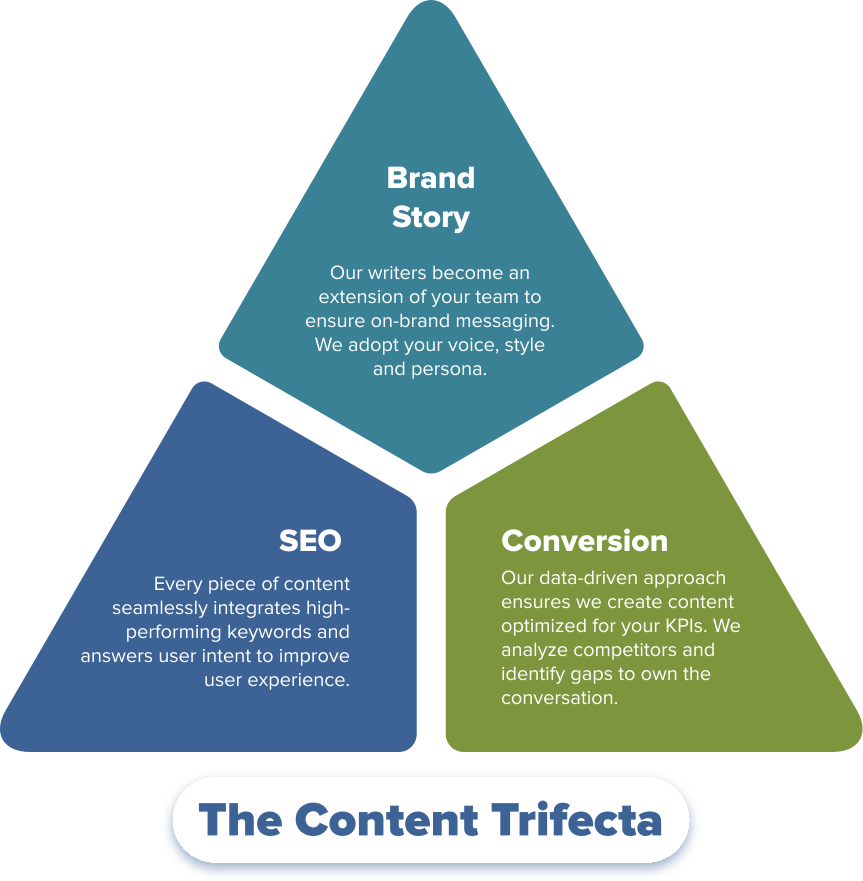 At Thrive Internet Marketing Agency, we solve your complex content issues through a proven, meticulous process. With this approach, we transform your website content into a growth engine that delivers real return on investment (ROI).